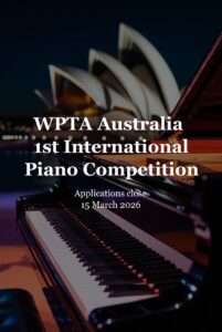 Join the first-ever WPTA Australia International Piano Competition! Global recognition awaits young and emerging pianists. Submit your video performance before applications close on 15 March 2026 — apply now!